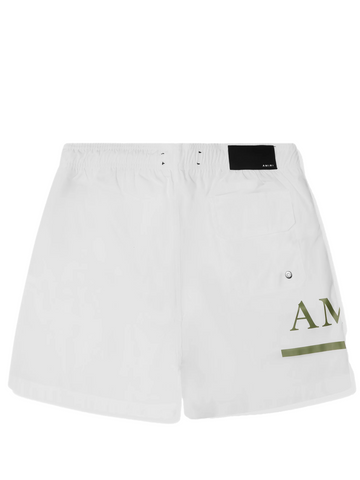 These Amiri MA Bar Logo Swim Trunks are perfect for poolside with a bold graphic style. Designed by L.A. born Mike Amiri, these shorts feature a secure back pocket and the label's MA Bar logo printed on the thigh. Embrace a mix of Ivy League and rock 'n' roll aesthetics with this stylish swimwear.