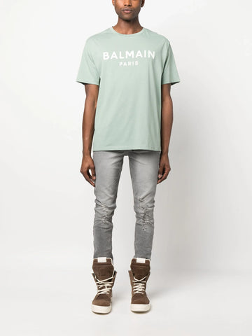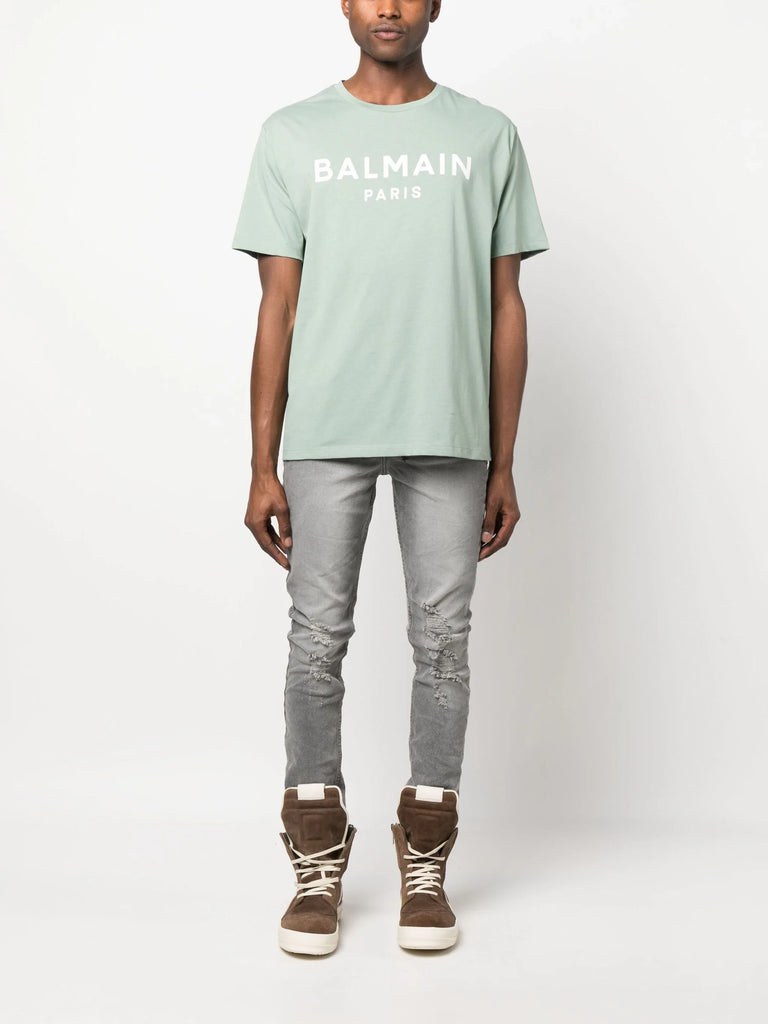 Balmain Paris Print Logo T-Shirt in Aqua Green