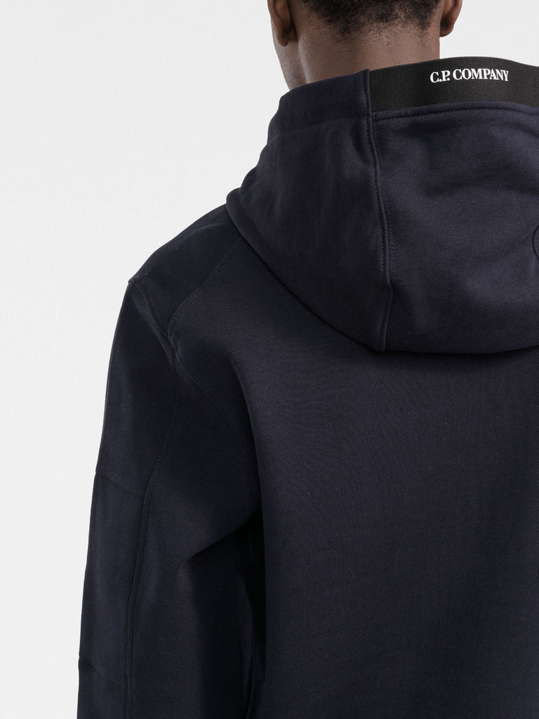 Navy hoodie in Navy, Detailed with C.P. Company's iconic Lens embellishment at the sleeve, this zip-up hoodie is crafted in a practical cotton fabrication.