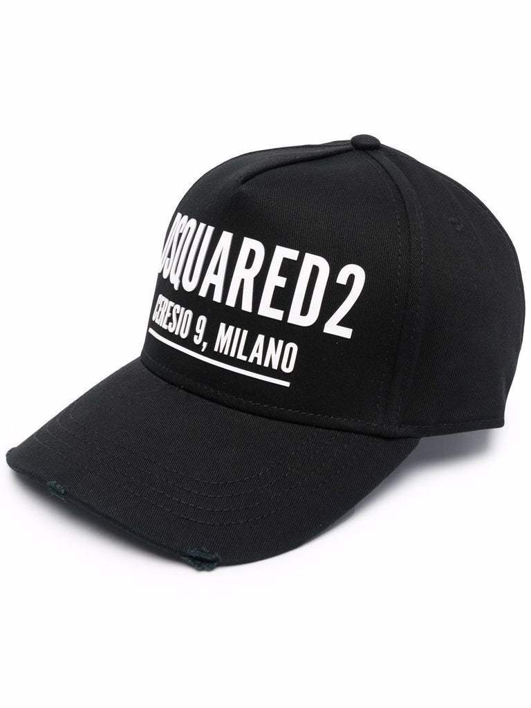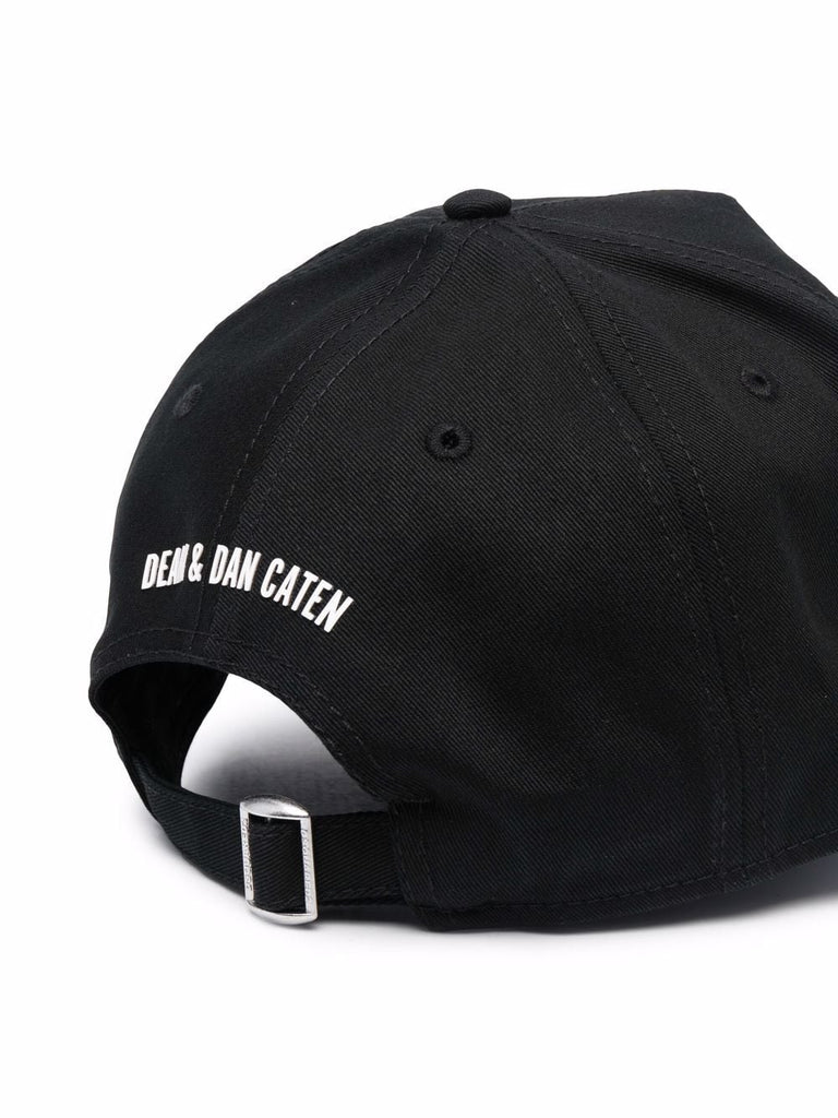 Jet black/white cotton logo-print cap from DSQUARED2 featuring logo print to the front, curved narrow brim and adjustable strap to the rear.