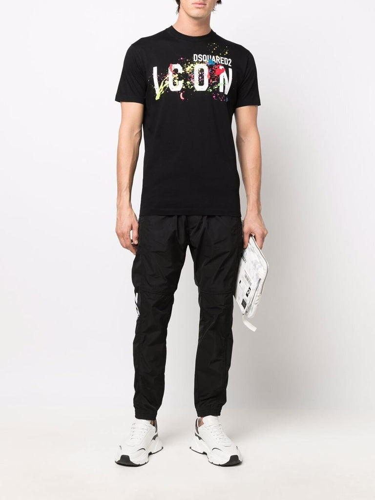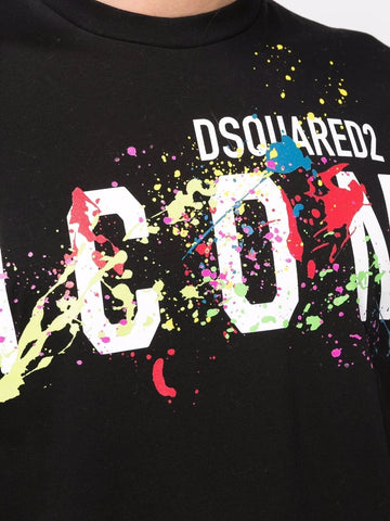 Elevate your collection with this Icon Splat T Shirt from Dsquared2. Crafted from 100% cotton, this t shirt is cut in a regular fit and features short sleeves, a ribbed crew neckline, a straight hemline and elasticated trims for a comfortable wear. Decorated in a solid colouring throughout, the look is complete with the brand's iconic logo surrounded by splat detailing for an edgy finish. Follow care instructions.