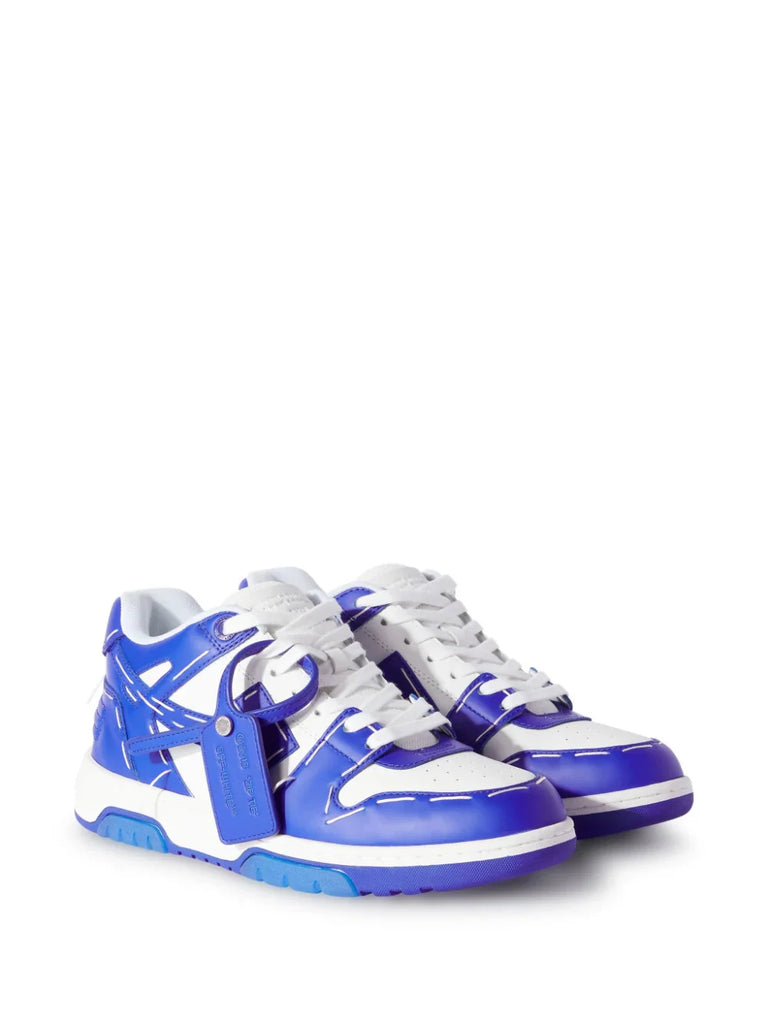 Off-White merges '80s and '90s aesthetics with street, basketball and running styles in these white and blue panelled sneakers. A chunky rubber outsole with translucent gel inserts completes the design, while a recontextualised logo nods to the house's covetable codes.