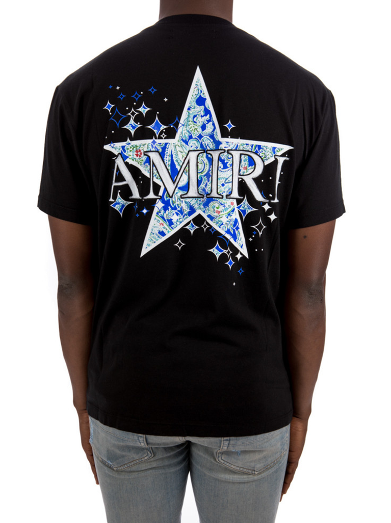 This black Amiri Paisley Star Tee is made of supima cotton. Featuring Amiri Paisley Star Logo Graphic on the chest and back, a crew neck, short sleeves and a straight hem.