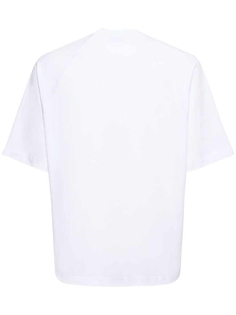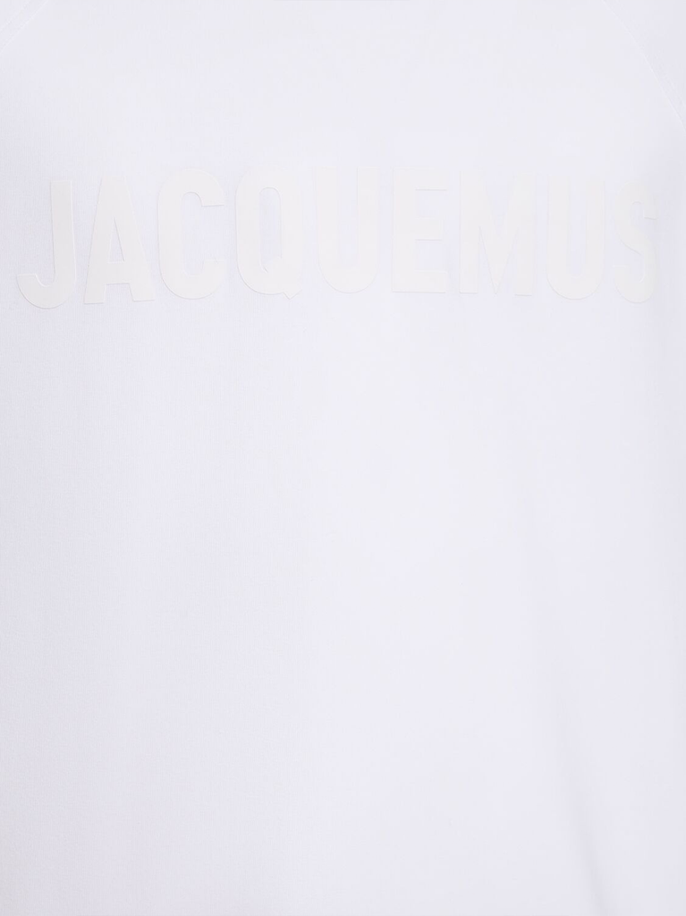 White Le T-shirt Typo T-shirt by Jacquemus in cotton with crew neck, loose fit, elbow-length raglan sleeves and logo on the chest.