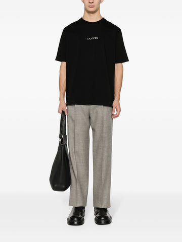 Lanvin puts its signature stamp on this black cotton T-shirt, stitching its recognisable logo in metallic silver threads at the chest.
