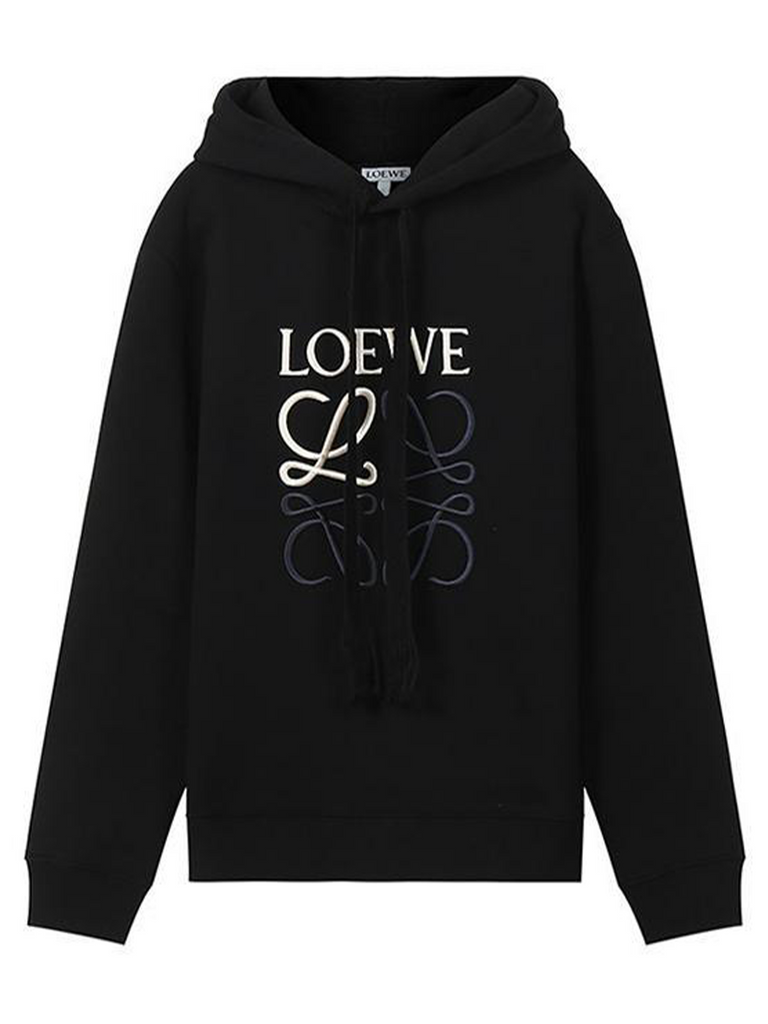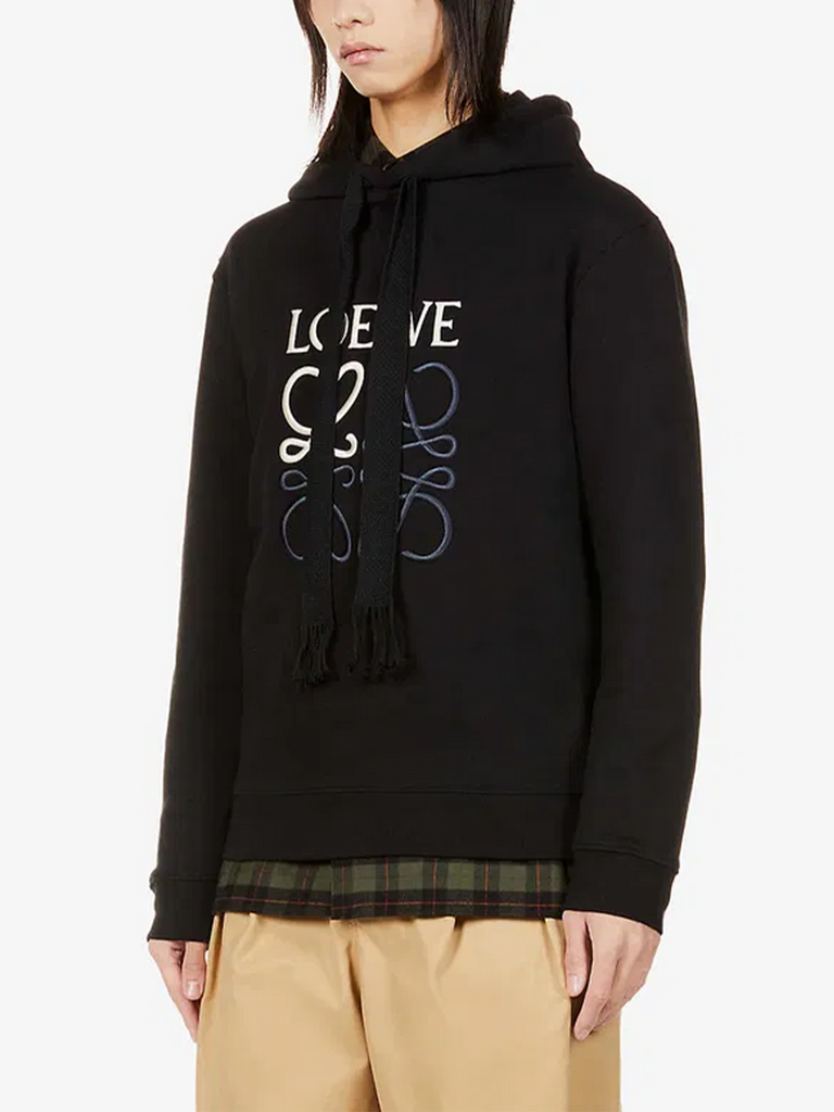 Loewe Anagram Embroidered Logo Hoodie in Black